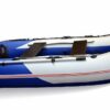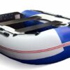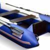 Надувная лодка СТЕЛС 275 изготовлена и ПВХ ткани плотностью 750 гр/м.кв., и представлена в современном дизайне и комбинированном сине/белом цвете.